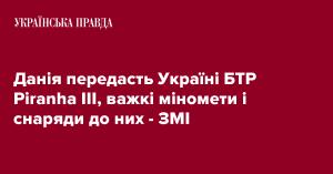 Данія передасть Україні БТР Piranha III, важкі міномети і снаряди до них – ЗМІ 2022年4月30日 ウクライナウクライナ・プラウダ新聞記事ウクライナプラウダ | copper_moleУкраїнська правдаДанія передасть Україні БТР Piranha III, важкі міномети і снаряди до них - ЗМІhttps://www.pravda.com.ua/news/2022/04/30/7343185/Данія передасть Збройним силам України колісні бронетранспортери Piranha III.