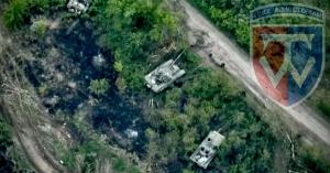 The footage appears to show the Russian military losing 73 pieces of equipment including tanks and infantry fighting vehicles at the Seversky Donets river near the village of Bilohorivka in Luhansk Oblast