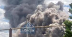 Густой черный дым над заводом видят жители Бахмута и окрестных населенных пунктов.