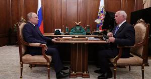 Vladimir Putin, 69, looked dazed and bloated as he sat across from defence giant Sergey Chemezov, whose company Rostec builds an array of military hardware