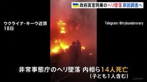 故障?破壊工作?ヘリ墜落でウクライナ内相ら14人死亡で当局が調査 ゼレンスキー大統領は兵器供与の加速訴え 2023年1月19日 日本TBS NEWS DIGテレビ局記事てぃーびーえすでぃぐ | copper_mole TBS NEWS DIG故障?破壊工作?ヘリ墜落でウクライナ内相ら14人死亡で当局が調査 ゼレンスキー...https://newsdig.tbs.co.jp/articles/-/283043ウクライナの首都・キーウ近郊で、政府高官らを乗せたヘリが墜落しましたが、現地当局は故障や破壊工作などの可能性も含め調べる方針です。18日、キーウ近郊で非常事態庁のヘリが墜落。乗っていた内相ら子ども1人…
