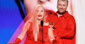 The German pop singer, who accepted the award with Sam Smith for “Unholy,” announced that she was the first transgender woman to win a Grammy in the best pop duo and group performance category.