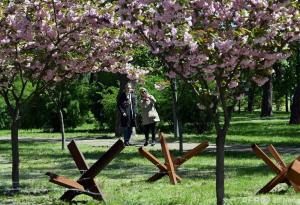 ウクライナの「京都公園」 桜と対戦車障害物の中を散策