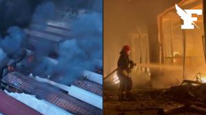 Ukraine: des pompiers tentent d'éteindre un incendie après une attaque russe ...