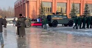 Ultra-rare Russian military funeral for General killed in Ukraine caught on film