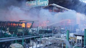 Rússneskar eldflaugar hæfðu stóra byggingarvöruverslun í Karkív fyrr í dag og ollu miklum skaða. Að minnsta kosti tveir létu lífið og myndefni frá vettvangi sýnir stærðarinnar eldsvoða loga í versluninni.