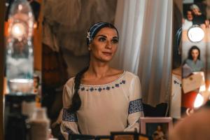 Olga Kifyak-fon-Kraimer, bailarina principal del Ballet de Kiev, se desmaquilla frente al espejo donde reposan las fotos de su padre y su hermano muertos. Aunque est? sentada, de...