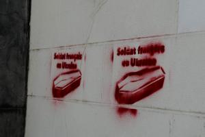Les trois jeunes suspects avaient été arrêtés près du ministère de la transformation et de la fonction publique avec des aérosols et des pochoirs, non loin de ces graffitis portant l’inscription « Soldat français en Ukraine ».