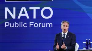 At the NATO summit in Washington, U.S. Secretary of State Antony Blinken said U.S.-built F-16 fighter jets are being transferred to Ukraine from Denmark and the Netherlands.