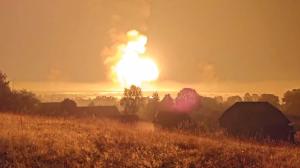A Ukrainian drone strike hit a Russian weapons depot reportedly caused a 2.8 magnitude earthquake and a huge blast captured in a social media post showed a massive explosion.