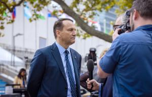 Napaść na Ukrainę Sikorski nazwał „hańbą Rosji, która nigdy nie zostanie zapomniana ani wybaczona”. Pokazał też zdjęcie sowieckich i hitlerowskich żołnierzy bratających się po inwazji ZSRR na Polskę 17 września 1939 r.