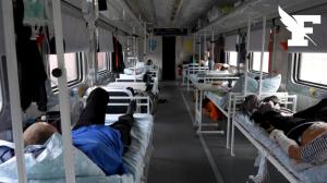 Dans la plus grande discrétion, l'armée ukrainienne a déployé sur les rails un véritable complexe hospitalier. Les soldats, dont la plupart ont été victimes de tirs d'artillerie ou d'une attaque de drones, sont pris en charge et peuvent être opérés sur place en cas de nécessité. Beaucoup ont subi une amputation et sont encore inconscients.