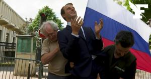 Les images de la statue de cire de Macron installée devant l’ambassade de Rus...